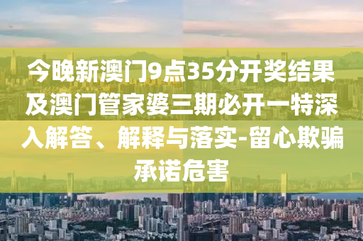 今晚新澳門9點(diǎn)35分開獎(jiǎng)結(jié)果”及“澳門管家婆三期必開一特”的解析、解讀與落實(shí),以及警惕虛假宣傳和欺騙承諾的危害