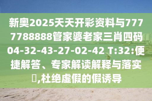 新奧2025天天開彩資料與7777788888管家婆老家三肖四碼04-32-43-27-02-42 T:32:便捷解答、專家解讀解釋與落實?