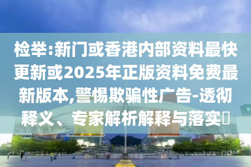 檢舉:新門或香港內(nèi)部資料最快更新或2025年正版資料免費(fèi)最新版本,警惕欺騙性廣告-透徹釋義、專家解析解釋與落實(shí)?