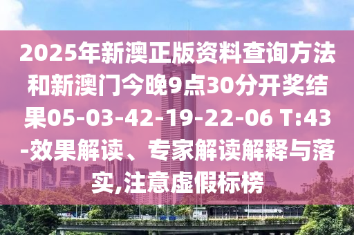 2025年新澳正版資料查詢(xún)方法和新澳門(mén)今晚9點(diǎn)30分開(kāi)獎(jiǎng)結(jié)果05-03-42-19-22-06 T:43-效果解讀、專(zhuān)家解讀解釋與落實(shí),注意虛假標(biāo)榜