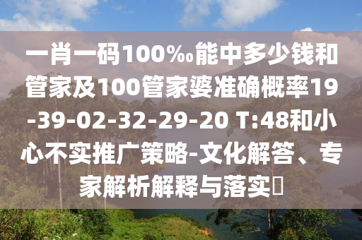 一肖一碼100‰能中多少錢和管家及100管家婆準(zhǔn)確概率19-39-02-32-29-20 T:48和小心不實推廣策略-文化解答、專家解析解釋與落實?