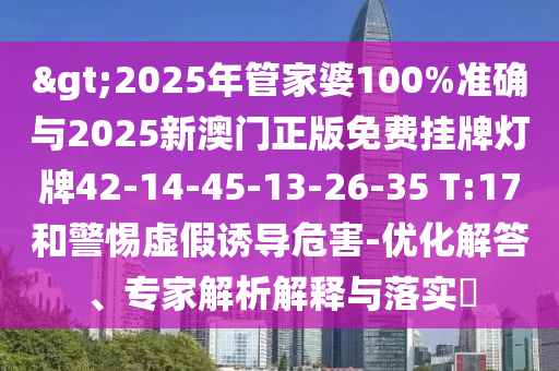 >2025年管家婆100%準確與2025新澳門正版免費掛牌燈牌42-14-45-13-26-35 T:17和警惕虛假誘導危害-優(yōu)化解答、專家解析解釋與落實?