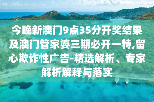 今晚新澳門9點35分開獎結果及澳門管家婆三期必開一特,留心欺詐性廣告-精選解析、專家解析解釋與落實