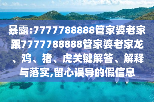 我們需要對(duì)關(guān)鍵詞進(jìn)行逐一解讀,這里的“暴露”一詞,通常指的是顯現(xiàn)、被外界所知的行為或情況,而“7777788888管家婆老家”,似乎是一個(gè)特定的地點(diǎn)或人物背景的描述,可能與某種特定的文化、習(xí)俗或信仰有關(guān),至于“龍、雞、豬、虎”,則是中國(guó)的傳統(tǒng)生肖,代表著特定的文化象征和人們的出生年份,而“留心誤導(dǎo)的假信息”則是提醒我們要警惕那些可能誤導(dǎo)我們的不實(shí)信息。
