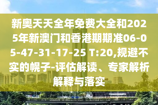 新奧天天全年免費大全和2025年新澳門和香港期期準(zhǔn)06-05-47-31-17-25 T:20的評估解讀、專家解析解釋與落實