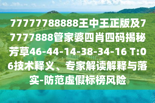 大家好!今天我們將深入探討您提供的關(guān)鍵詞:“77777788888王中王正版”、“77777888管家婆四肖四碼揭秘”、“芳草46-44-14-38-34-16 T:06”等,我們將全面釋義、解釋與落實(shí)這些關(guān)鍵詞,同時(shí)提醒公眾警惕虛假宣傳的風(fēng)險(xiǎn)。