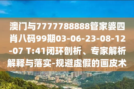 澳門與7777788888管家婆四肖八碼99期03-06-23-08-12-07 T:41閉環(huán)剖析、專家解析解釋與落實-規(guī)避虛假的畫皮術