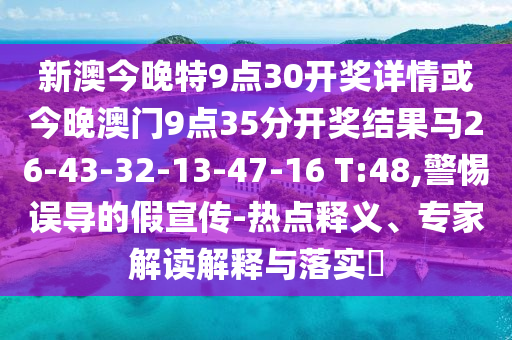 新澳今晚特9點30開獎詳情或今晚澳門9點35分開獎結(jié)果馬26-43-32-13-47-16 T:48,警惕誤導(dǎo)的假宣傳-熱點釋義、專家解讀解釋與落實?