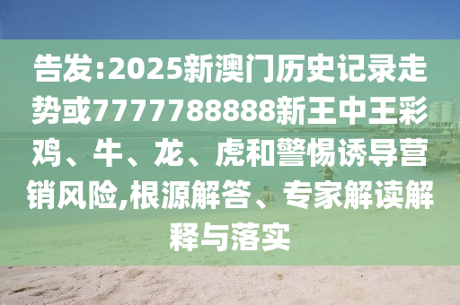 告發(fā):新澳門歷史記錄走勢”,這是一個涉及游戲行業(yè)或游戲預(yù)測領(lǐng)域的關(guān)鍵詞組合,從字面上看,“告發(fā)”可能意味著公開或分享某種信息,“新澳門歷史記錄走勢”則涉及到游戲或游戲游戲的過去數(shù)據(jù)和趨勢分析,而“7777788888新王中王彩雞、牛、龍、虎根源解答”,這部分似乎是在描述某種游戲游戲的特定號碼和生肖元素?!皩<医庾x解釋與落實”則意味著有專業(yè)人士對這些信息進(jìn)行解讀,并嘗試將其付諸實踐或應(yīng)用?!熬枵T導(dǎo)營銷風(fēng)險”則是對可能出現(xiàn)的虛假宣傳或不實信息的警告。
