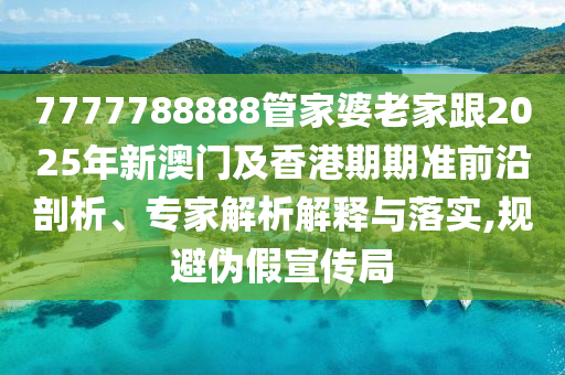 7777788888管家婆老家跟2025年新澳門及香港期期準(zhǔn)”的相關(guān)內(nèi)容的前沿剖析、專家解析解釋與落實(shí),以及如何規(guī)避虛假宣傳的問題,以下是我的分析。