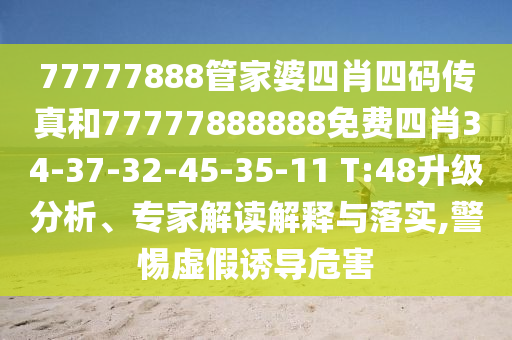 77777888管家婆四肖四碼傳真”和“77777888888免費(fèi)四肖特定數(shù)字組合升級(jí)分析”的解讀與警惕虛假宣傳
