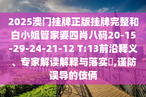2025澳門掛牌正版掛牌完整和白小姐管家婆四肖八碼20-15-29-24-21-12 T:13前沿釋義、專家解讀解釋與落實(shí)?,謹(jǐn)防誤導(dǎo)的伎倆