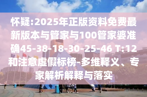 2025年正版資料免費(fèi)最新版本與管家與100管家婆準(zhǔn)確45-38-18-30-25-46 T:12:多維釋義、專家解析解釋與落實(shí)