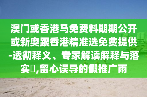 澳門或香港馬免費料期期公開或新奧跟香港精準選免費提供:透徹釋義、專家解讀解釋與落實?