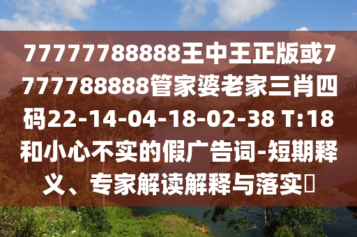 揭發(fā):77777788888王中王正版”或“7777788888管家婆老家三肖四碼”等關(guān)鍵詞的全面釋義、專家解讀與落實(shí)及警惕虛假宣傳的解析
