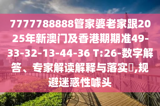 7777788888管家婆老家跟2025年新澳門及香港期期準49-33-32-13-44-36 T:26:數(shù)字解答、專家解讀解釋與落實?