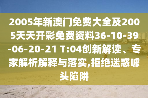 2005年新澳門免費(fèi)大全及2005天天開(kāi)彩免費(fèi)資料36-10-39-06-20-21 T:04的創(chuàng)新解讀、專家解析解釋與落實(shí)