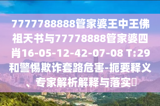 7777788888管家婆王中王佛祖天書與77778888管家婆四肖16-05-12-42-07-08 T:29和警惕欺詐套路危害-扼要釋義、專家解析解釋與落實(shí)?