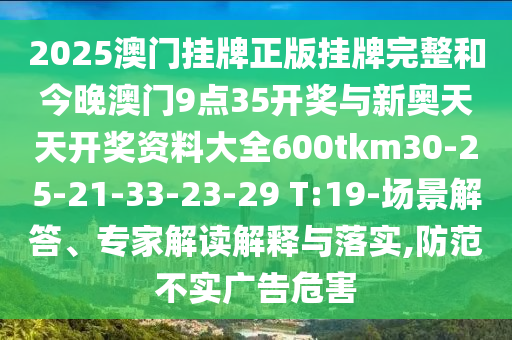 2025澳門掛牌正版掛牌完整和今晚澳門9點35開獎與新奧天天開獎資料大全600tkm30-25-21-33-23-29 T:19-場景解答、專家解讀解釋與落實,防范不實廣告危害
