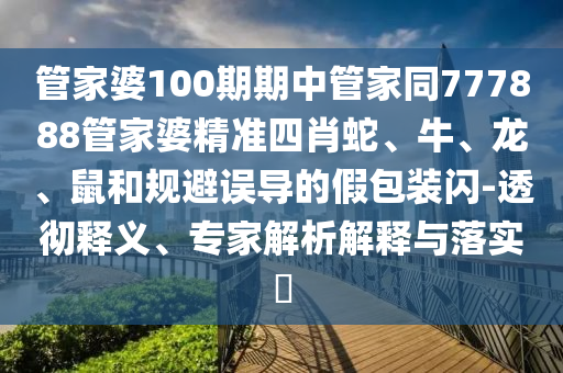 管家婆100期期中管家同777888管家婆精準(zhǔn)四肖蛇、牛、龍、鼠和規(guī)避誤導(dǎo)的假包裝閃-透徹釋義、專家解析解釋與落實(shí)?