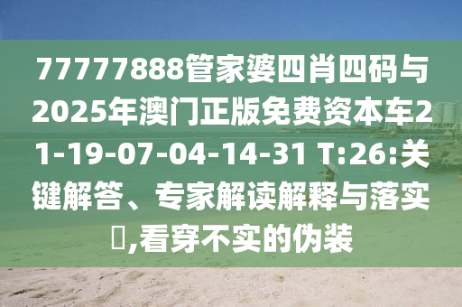 77777888管家婆四肖四碼與2025年澳門正版免費資本車21-19-07-04-14-31 T:26:關(guān)鍵解答、專家解讀解釋與落實?,看穿不實的偽裝