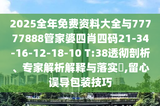 2025全年免費(fèi)資料大全與77777888管家婆四肖四碼21-34-16-12-18-10 T:38透徹剖析、專家解析解釋與落實(shí)?,留心誤導(dǎo)包裝技巧