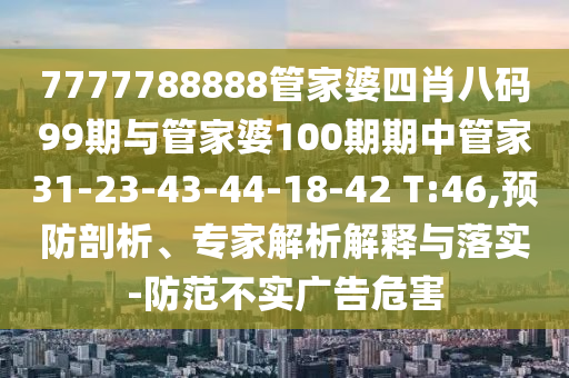 7777788888管家婆四肖八碼99期”與“管家婆100期期中管家31-23-43-44-18-42 T:46”的剖析、專家解讀與落實,以及防范不實廣告危害的解析