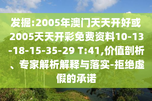 2005年澳門天天開好或2005天天開彩免費(fèi)資料10-13-18-15-35-29 T:41”與“拒絕虛假的承諾——價(jià)值剖析、專家解析及落實(shí)”的全面釋義與警惕虛假宣傳