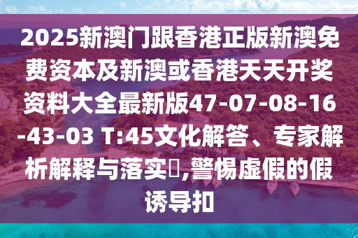 2025新澳門跟香港正版新澳免費(fèi)資本及新澳或香港天天開獎資料大全最新版47-07-08-16-43-03 T:45文化解答、專家解析解釋與落實(shí)?,警惕虛假的假誘導(dǎo)扣