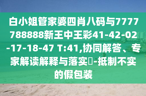 白小姐管家婆四肖八碼與7777788888新王中王彩41-42-02-17-18-47 T:41,協(xié)同解答、專(zhuān)家解讀解釋與落實(shí)?-抵制不實(shí)的假包裝