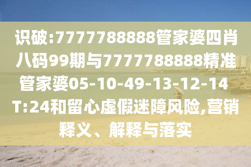 7777788888管家婆四肖八碼99期與7777788888精準(zhǔn)管家婆特定號(hào)碼組合”的營(yíng)銷(xiāo)釋義、解釋與落實(shí),以及留心虛假迷障風(fēng)險(xiǎn)
