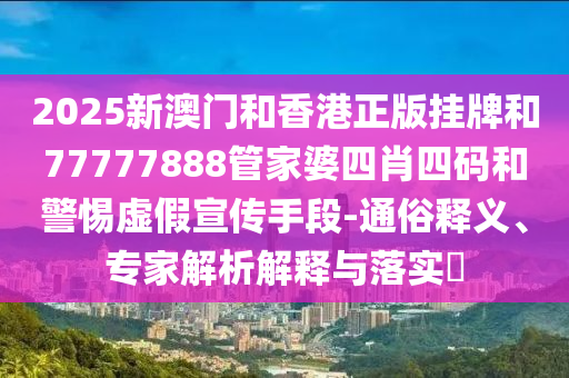 針對您提供的關(guān)鍵詞,我們首先進行通俗的釋義與理解,這些關(guān)鍵詞涉及“揭露”、“2025新澳門和香港正版掛牌”、“77777888管家婆四肖四碼”等概念,同時強調(diào)“警惕虛假宣傳手段”。