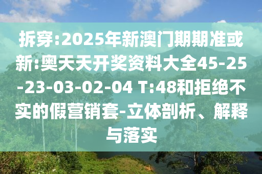 拆穿:2025年新澳門期期準(zhǔn)或新:奧天天開獎資料大全45-25-23-03-02-04 T:48和拒絕不實的假營銷套-立體剖析、解釋與落實