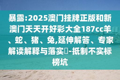 暴露:2025澳門掛牌正版和新澳門天天開好彩大全187cc羊、蛇、豬、兔,延伸解答、專家解讀解釋與落實?-抵制不實標(biāo)榜坑