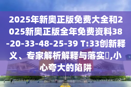 2025年新奧正版免費(fèi)大全和2025新奧正版全年免費(fèi)資料38-20-33-48-25-39 T:33的創(chuàng)新釋義、專家解析解釋與落實(shí)?