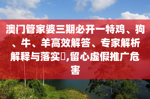 澳門管家婆三期必開一特雞、狗、牛、羊高效解答、專家解析解釋與落實?,留心虛假推廣危害