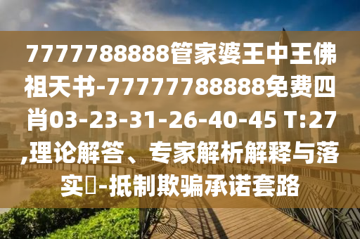 7777788888管家婆王中王佛祖天書-77777788888免費四肖03-23-31-26-40-45 T:27,理論解答、專家解析解釋與落實?-抵制欺騙承諾套路