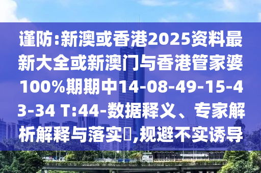大家好!針對您提供的關鍵詞:“謹防:新澳或香港2025資料最新大全或新澳門與香港管家婆100%期期中14-08-49-15-43-34 T:44,規(guī)避不實誘導”,我們有必要進行一次全面的釋義、解釋與落實,并提醒公眾警惕虛假宣傳。