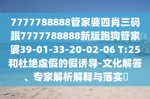 7777788888管家婆四肖三碼跟7777788888新版跑狗管家婆39-01-33-20-02-06 T:25和杜絕虛假的假誘導-文化解答、專家解析解釋與落實?