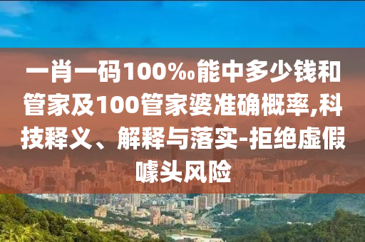 關(guān)于關(guān)鍵詞“一肖一碼100%能中多少錢”、“管家及100管家婆準(zhǔn)確概率”、“科技釋義、解釋與落實”以及“拒絕虛假宣傳風(fēng)險”的釋義、解釋與落實,我們需要從多個角度進(jìn)行深入探討,以下是對這些關(guān)鍵詞的全面解釋和公眾警惕虛假宣傳的提醒。
