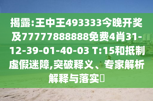 關(guān)于揭露“王中王493333今晚開獎(jiǎng)”及“77777888888免費(fèi)4肖31-12-39-01-40-03 T:15”現(xiàn)象的釋義、專家解讀與落實(shí)抵制虛假迷障的突破