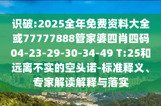 識(shí)破:2025全年免費(fèi)資料大全或77777888管家婆四肖四碼04-23-29-30-34-49 T:25和遠(yuǎn)離不實(shí)的空頭諾-標(biāo)準(zhǔn)釋義、專家解讀解釋與落實(shí)